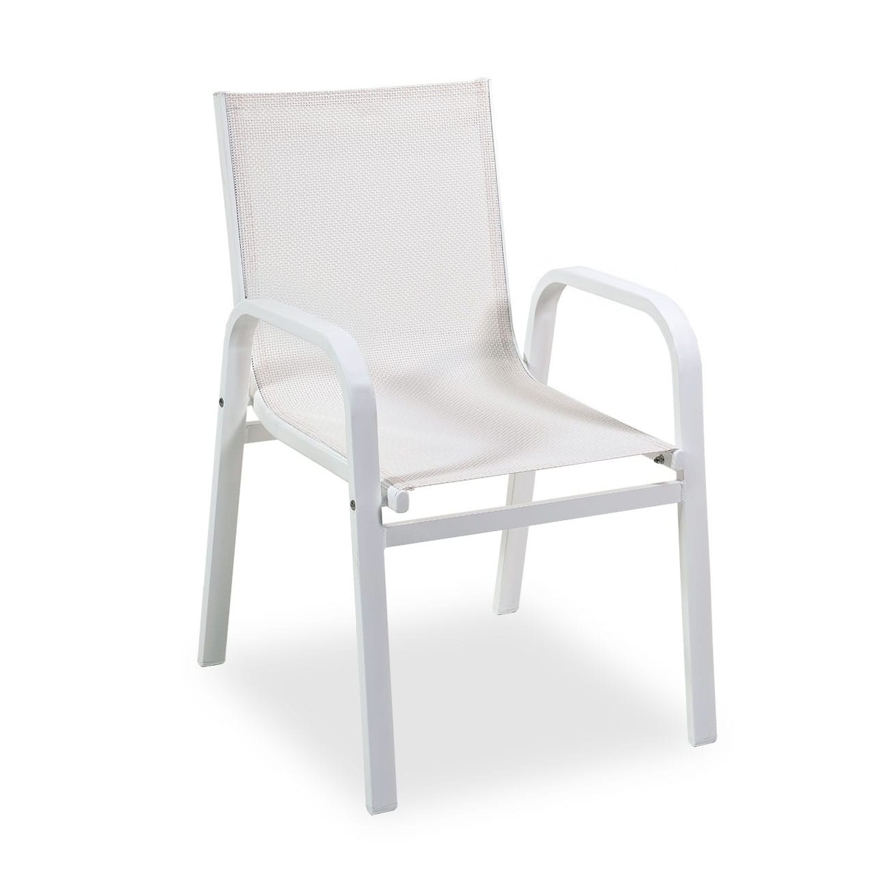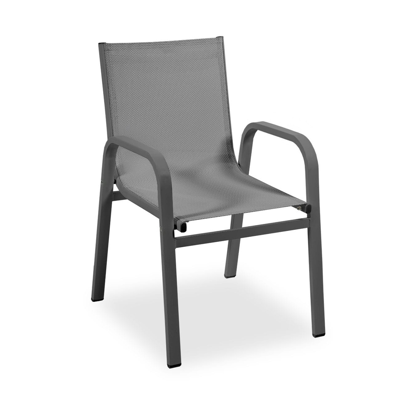 La poltroncina Sally ha telaio in alluminio verniciato a polveri, sedile e schienale in textilene.