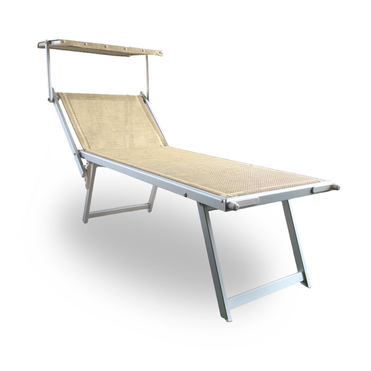 Il telaio in alluminio del lettino Sunny 3 posizioni high si presenta massiccio nella sua struttura generale, ma di bell’ aspetto nell’ insieme.
